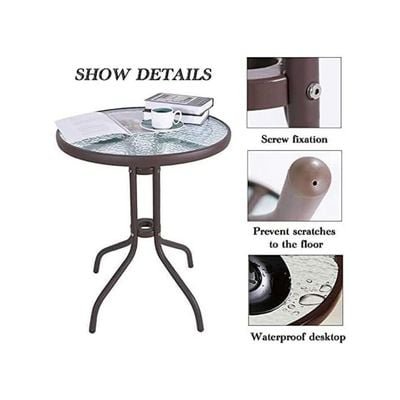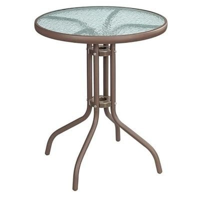 Harmony Home Stylish Round Patio Table, 60x60x70 cm – Brown Tempered Glass Top with Durable Metal Frame, Ideal for Outdoor & Indoor Use