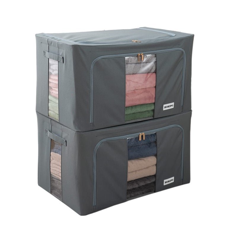 HOKIPO 600D Oxford Fabric Clothes Organiser for Wardrobe, Grey 66L (50x40x33 cm) – Pack of 2 (AR-4733-GRY*2)