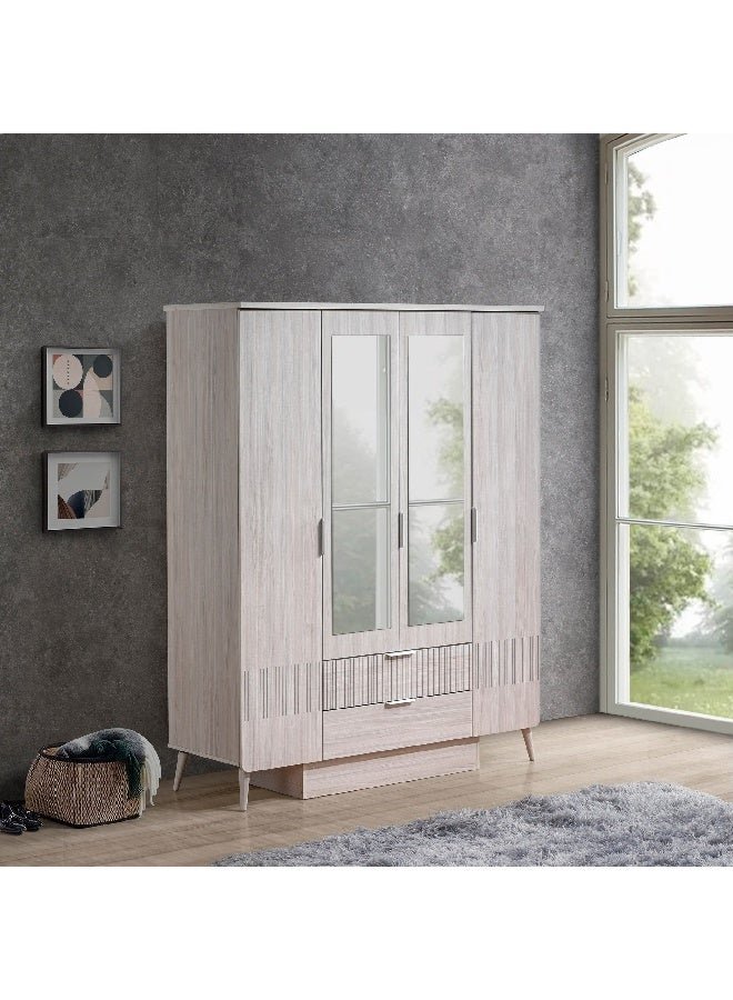 Home Box Elmwood 4-Door Wardrobe with 2 Drawers and Mirror 55 x 201 x 160 cm