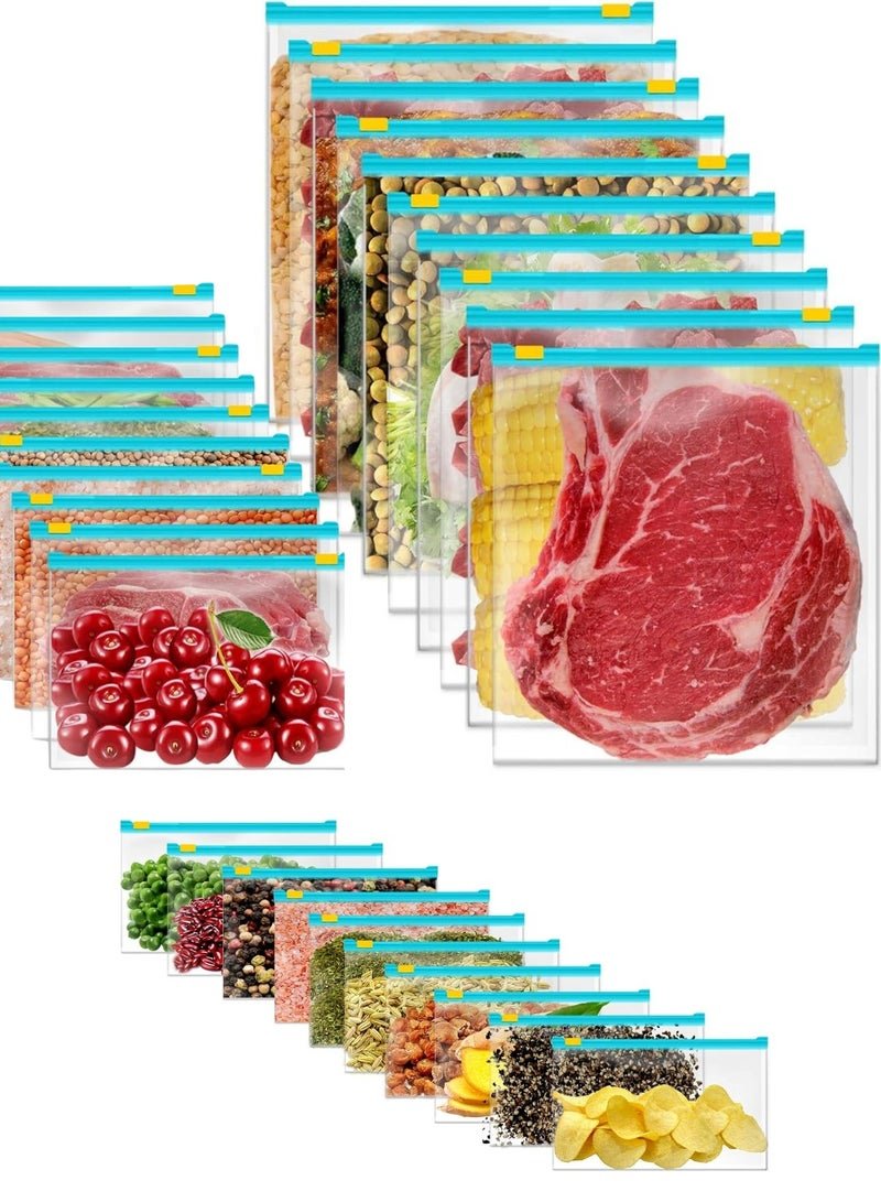 Horizon 30 Piece Reusable Food Storage Bags or Plastic bags with Cleanable Ziplock Bags for Kitchen Freezer – Includes 10 Small, 10 Medium, and 10 Large Zipper Bag