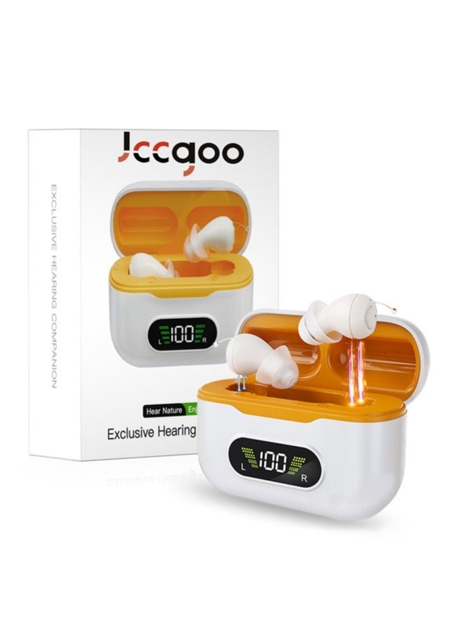 Jccgoo Hearing Aids for Seniors with Intelligent Auto-Noise Cancelling (Not Amplifiers), Rechargeable Digital Hearing Aid with 32-Channel, Super Mini,7-Day Standby,Battery Digital Display&UV Sterilization