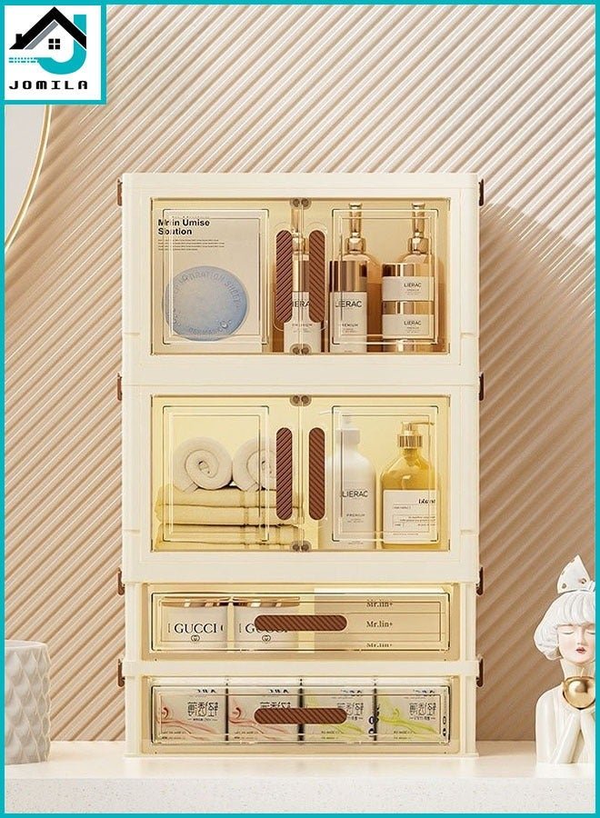 JOMILA Foldable Large Capacity Storage Box with 2 Drawer and 2 Door for Perfume and Skincare Storage Box, Large Capacity with Drawers, Transparent Drawer Cabinet, Suitable for Vanity and Bathroom Countertop, Cosmetic Storage Box