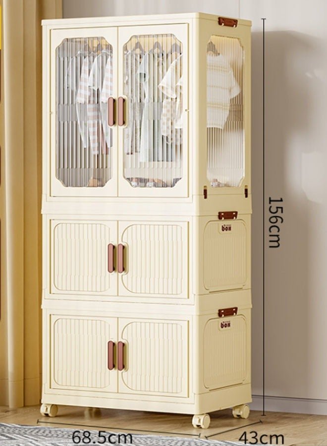 Roman Gifts Portable Fabric Canvas Wardrobe With Storage Cupboard Organiser Beige