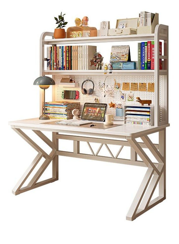 keke Computer Tables with Shelves for Organized Productivity White Frame with Hole Board Regular Height 170 CM, Width 60 cm, Length 160cm