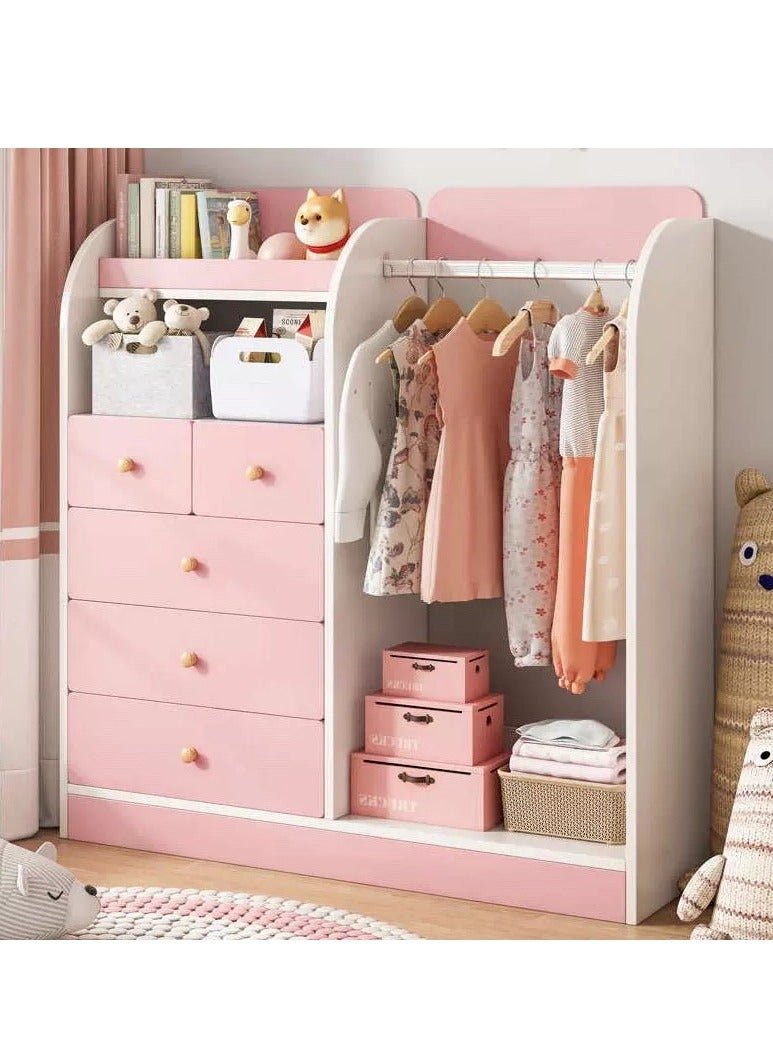 Kids Wardrobe Kids Clothing Rack Freestanding Half-Open Clothes Rack Baby Storage Cabinet with 5 Drawer Wooden Wardrobe Closet with Hanging Rods Storage Cupboard for Bedrooms,Entrances(Pink)