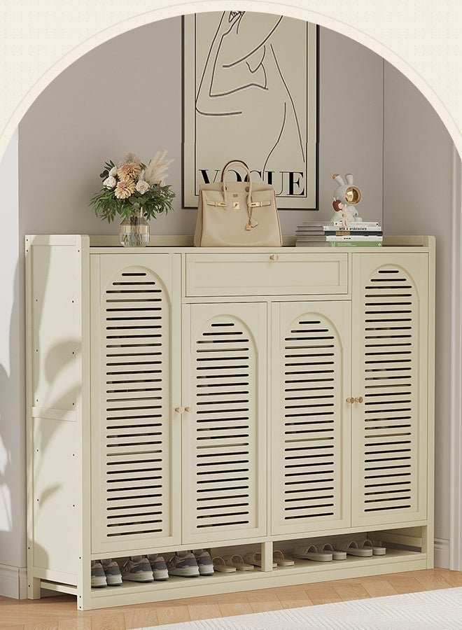 KLNAMAEAAN Shoe Cabinet Milky White Entryway with Four Doors and Eight Layers With Drawer 110*32*117cm
