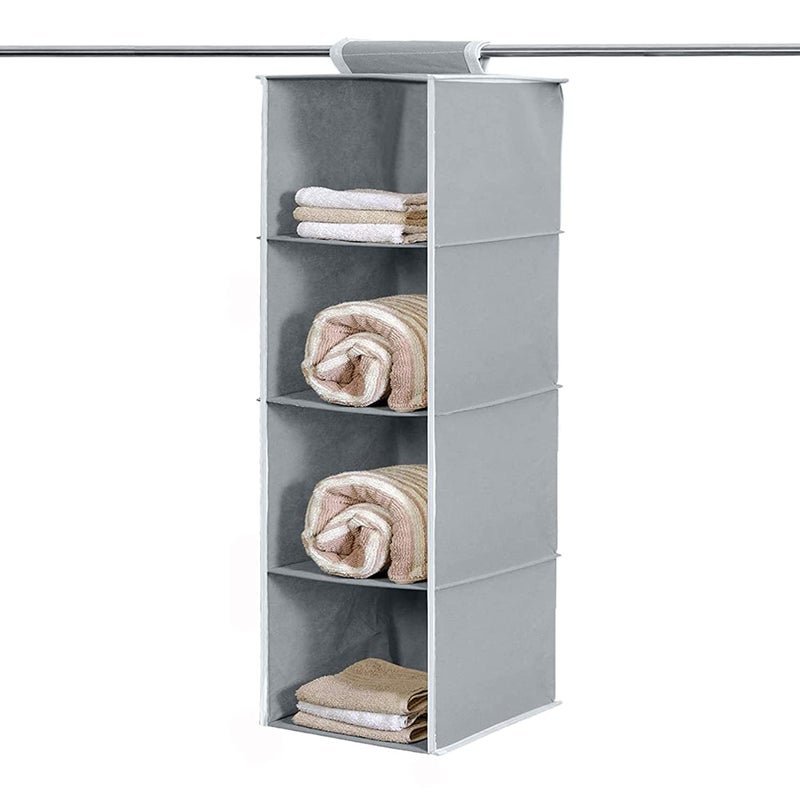 Kuber Industries 4 shelf Closet Organizer For Wardrobe|Non-woven Collapsible Wardrobe|Hanging Shelf For clothes|4 shelves Cloth Organizer (Grey)|Fabric