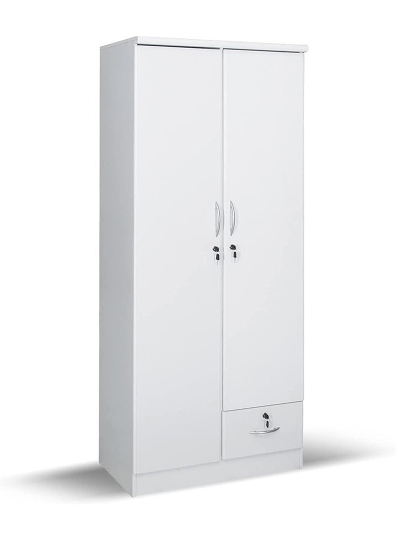 KUSTOMDECO 2 Door Wooden Wardrobe with Lock & Drawer | Modern White Wooden Almirah Closet for Bedroom, Home & Office Storage