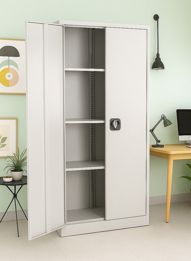 KUSTOMDECO Steel Metal Filing Cabinet with Key Lock & Adjustable Shelves | Secure Office Storage Cupboard for Files, Documents & Supplies | White
