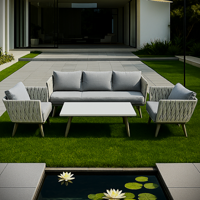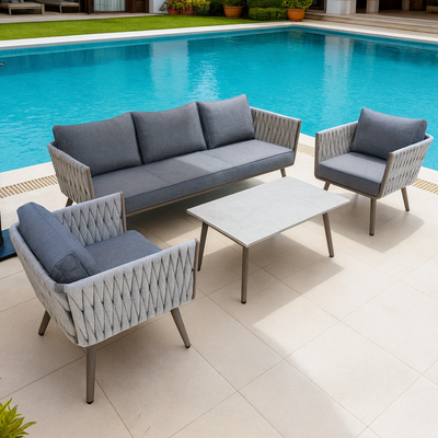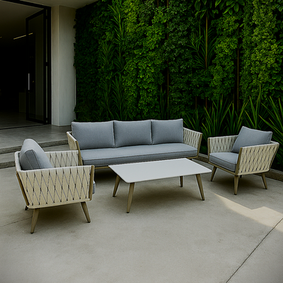 Luxury Premium Rope Design Garden Sofa with Marble Top Table – Aluminium Frame + PVC Fibre Rope