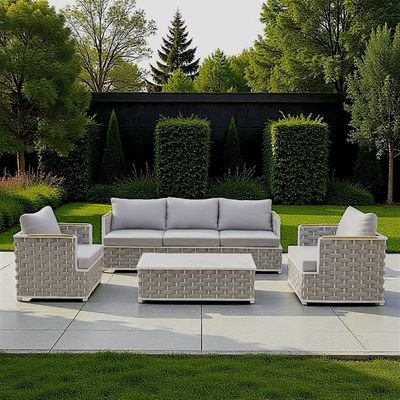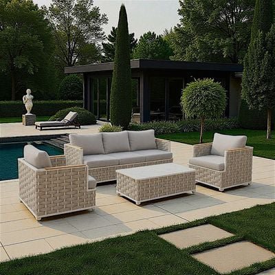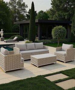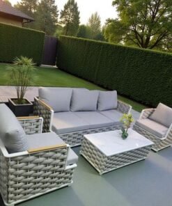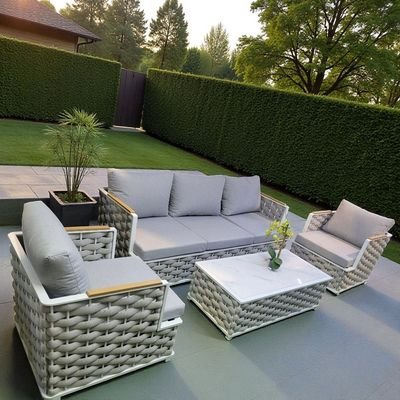 Luxury Woven Rope Outdoor Sofa Set – Premium Garden Lounge with Marble-Top Table