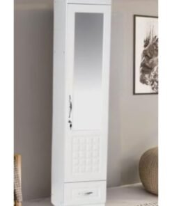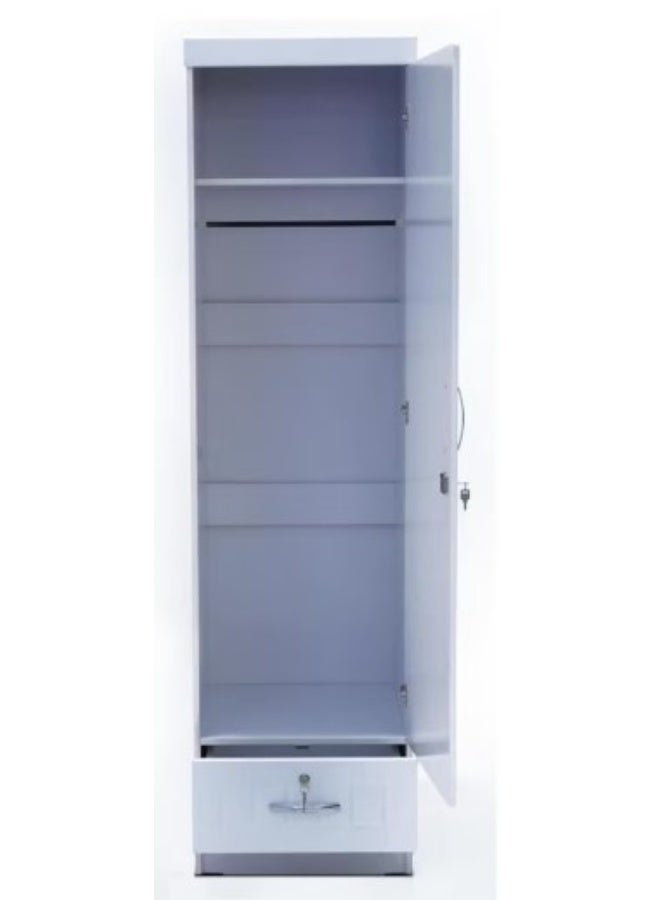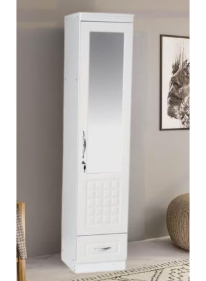 MAF furniture MAF One Door Wooden Wardrobe Cabinet Cupboard With Mirror and Drawer Lock Keys White Color Size 190x50x52 Cm