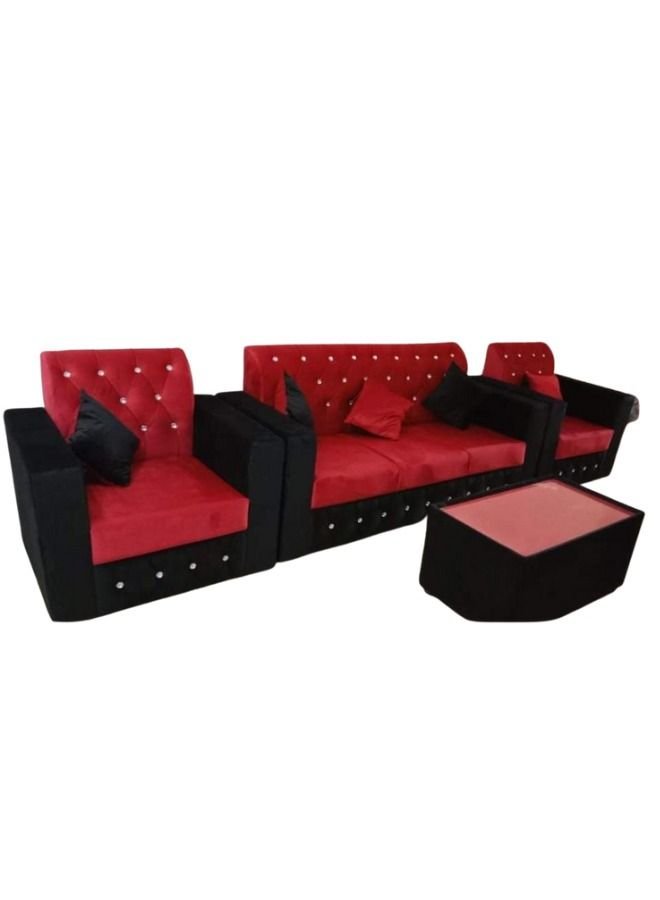 Maharat Al Bahar 5– Seater Sofa Set With Table &Pillow – 1+1+3- Red/ Black 190x80x80