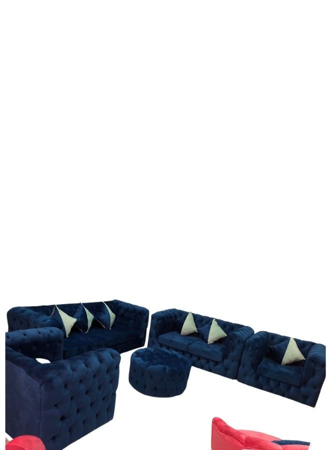Maharat Al Bahar Blue 7-Seater Sofa Set with Table and Pillows – Comfortable and Stylish Addition to Your Living Space