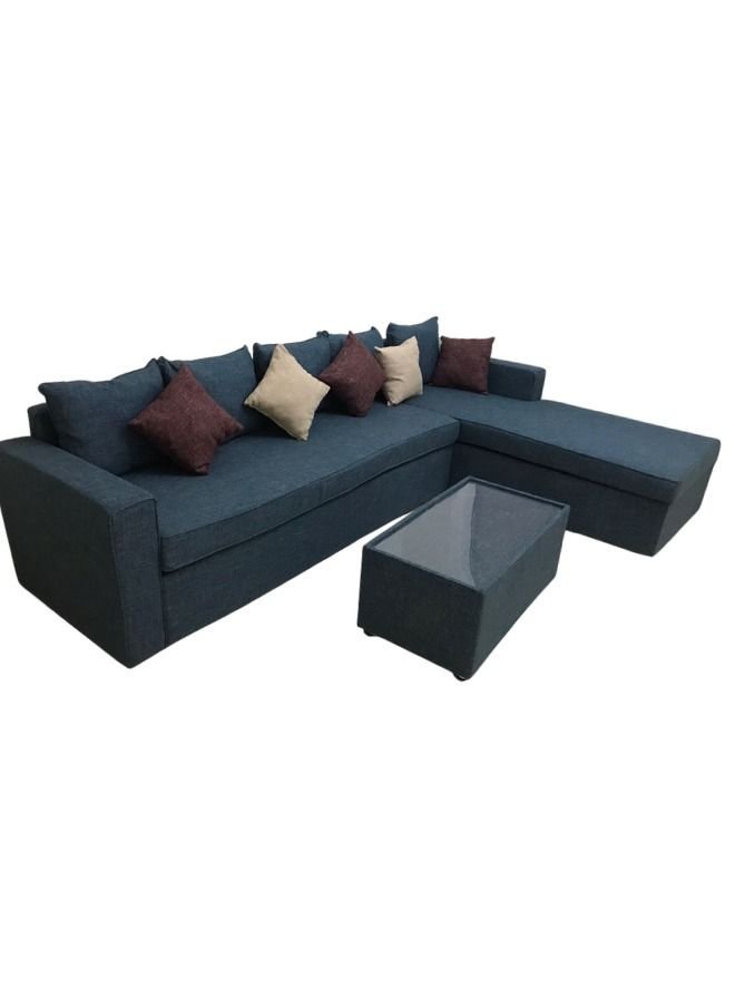 Maharat Al Bahar L Shape-Cerbo Diwan Velvet Sofa Set 5 Seater With Cushion And Table Blue 260x80x80