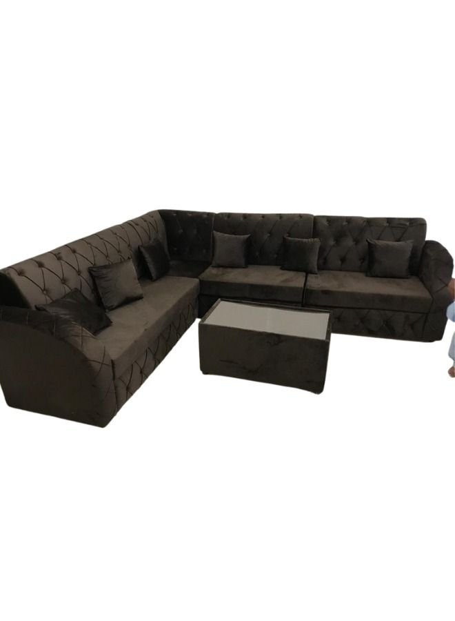 Maharat Al Bahar L Shaped Sofa Set 6 Seater With Cushion & Table Dark Brown 250x80x80