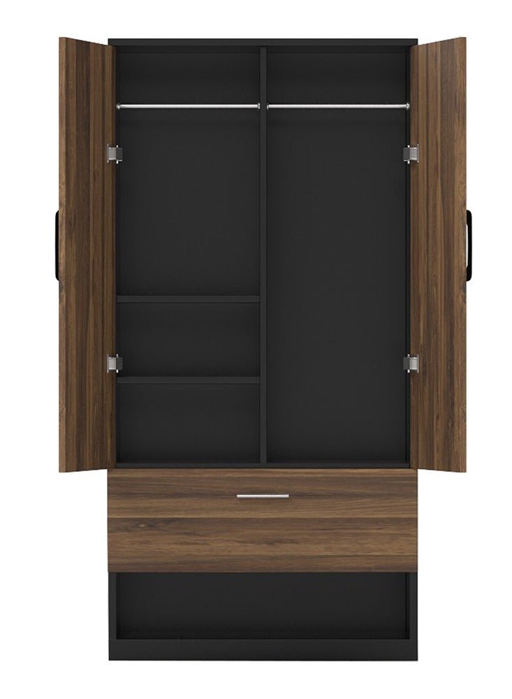 Mahmayi Wooden Wardrobe with 1 Doors, and Open Shoe Rack, Hanging Rod and 2 Compartments, Wooden Closet Storage Cabinet for Bedroom, Living Room – Dark Hunton Oak and Lava Grey