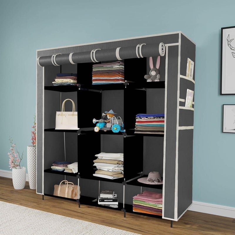 Roman Gifts Portable Fabric Canvas Wardrobe With Storage Cupboard Organiser Grey