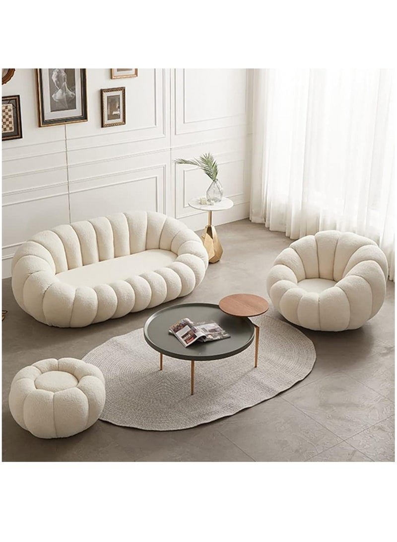 MAPLE HOME DECORATION Maple Home Decoration Lamb Fleece Sofa White Three Seater 1 pcs 180cm Modern Nordic Flower Minimalist Style Sofa For Living Room Cafe Hotel Shop Home Furniture (1 PC)