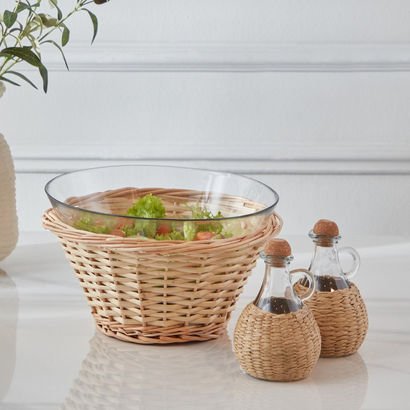 Minimalist 3-Piece Glass Serving Bowl Set with Oil…