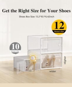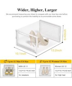 MissTiara X-Large Shoe Storage Boxes Organizers for Closet 12 Pack, Fit Size 11,Clear Plastic Stackable Sneaker Containers for Entryway, Space Saving Shoe Rack,Substitute Drawer Organize Unit, White