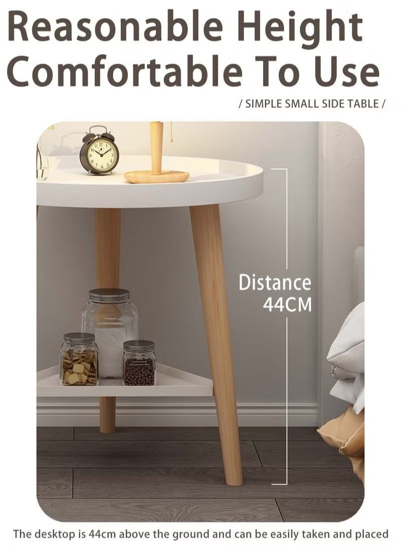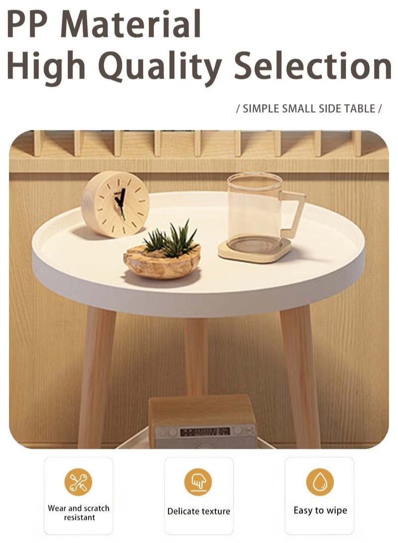 MIXDE 2 Tier Coffee Table, Round End Table Sturdy Bedroom Guest Room Bedside Corner Table With Storage Function For Home Office Decoration 40 * 40 * 44cm