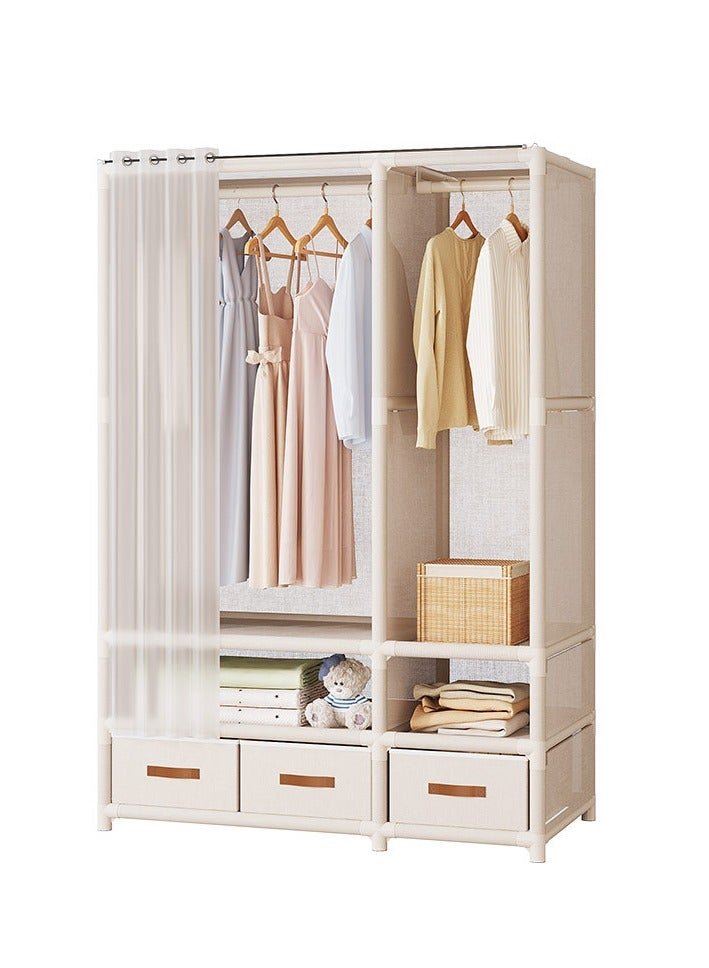MIXDE Portable Wardrobe Storage Closet, Clothes Storage Cabinet with Curtain, Clothes Rack Multi-functional Storage Clothes Hanging Multi-Layer Shelving for Living Room, Bedroom, Clothes
