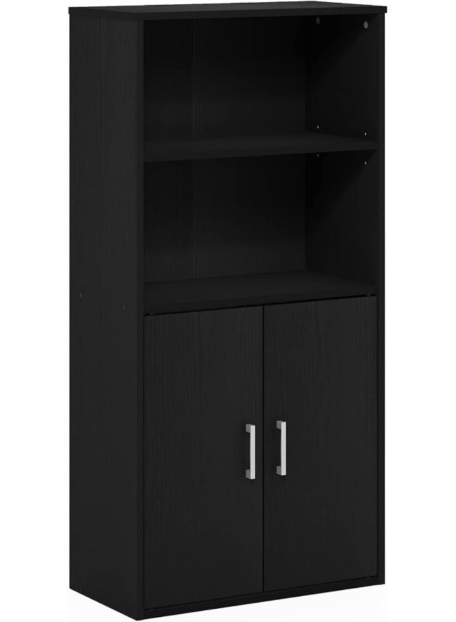 MODERN HOME Black Bookcase with 2-Door Bottom Cabinet | Multi-Use Office & Home Storage