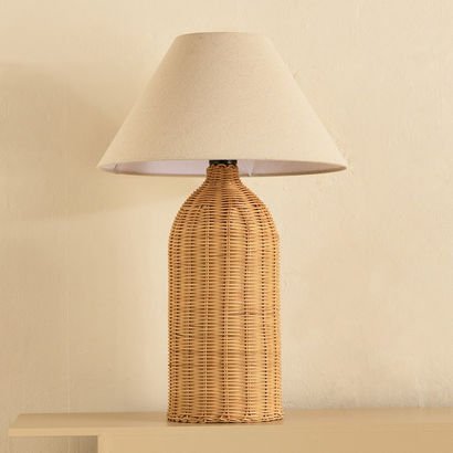 Naturel Metal Rattan Table Lamp with Fabric Linen …