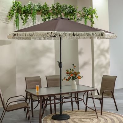 Oasis Umbrella with Tassel without Base-Coffee-2.7m-With 6-Month Warranty