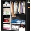 OBBO Portable 3-Door Foldable Wardrobe Closet – Fabric Plastic Iron Storage Organizer with Hanging Rod & 10 Racks | Lightweight & Space-Saving Storage Solution | 162 x 44 x 138 cm – Black