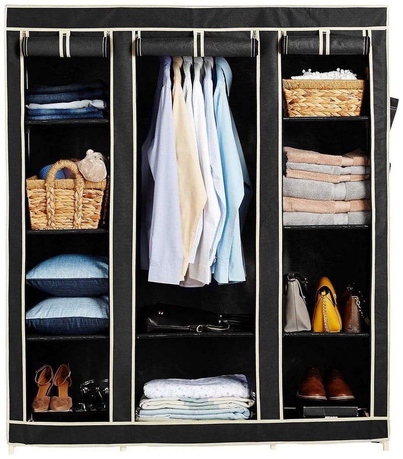 Roman Gifts Portable Fabric Canvas Wardrobe With Storage Cupboard Organiser Grey