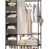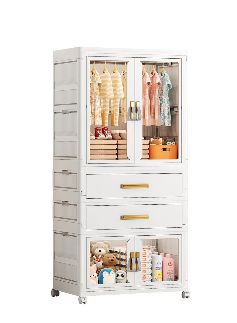 Ollieroo Plastic Modular Storage Cabinet – PP/PET/ABS Wardrobe with 2 Drawers, Foldable Box, Hanging Rod and 6 Hangers (Colors Random), Lockable Swivel Wheels, Pre-Installed Handles, and Magnetic Doors for Bedroom, Closet, or Living Room, 64 × 41 × 144.5 cm