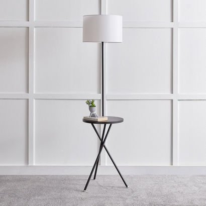 Omega Metal Floor Lamp with Side Table and Fabric …