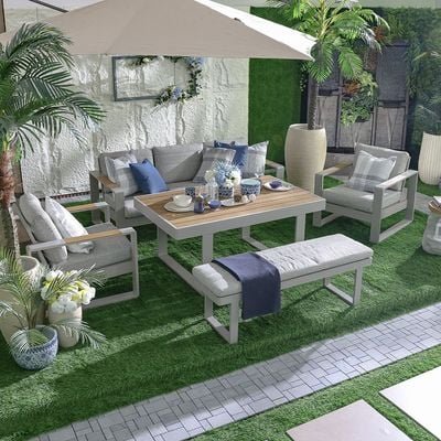 Manchester Hills 1 + 6-Seater Dining Set – Grey – With 3-Year Warranty