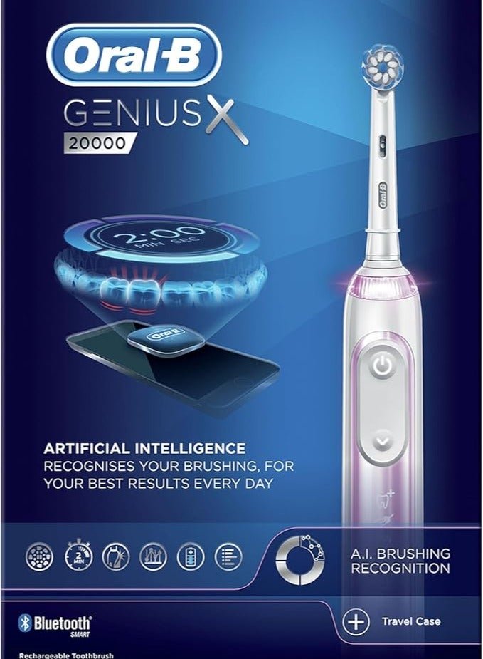 Oral-B Genius X Electric Toothbrush with Artificial Intelligence, App Connected Handle, Travel Case, 6 Mode Display with Teeth Whitening, Pink