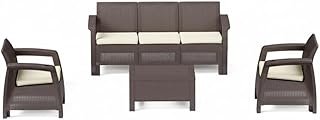 Outdoor Sofa Set | 5-Seater | Durable Plastic Rattan | Lightweight & Portable | Coffee Table Included (Dark Brown-Beige Cushions)