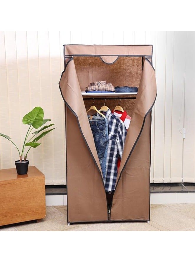 Portable fabric wardrobe with zipper closure, modern and fits in tight spaces, easy to disassemble and assemble