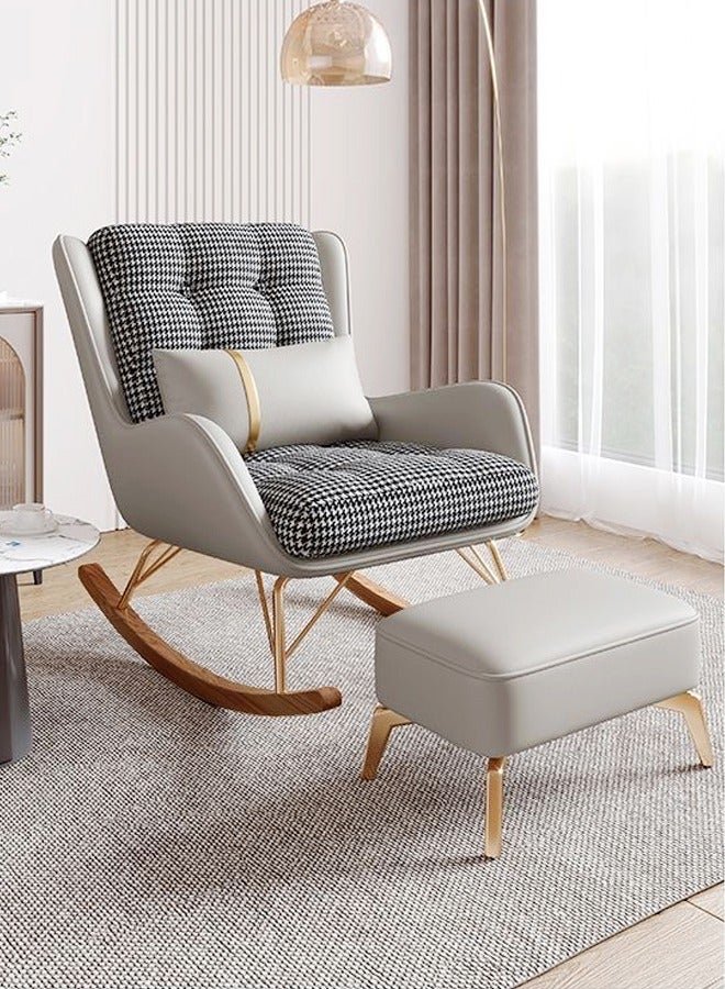 Raffine Set of 2 Modern Upholstered Recliner High Back Ergonomic Comfy Rocking Chair with Footrest Patio Rocking Chair Couch Lounge Single Sofa Chair for Balcony Outdoor Chair with Armrests Contemporary Accent Chair 60x80x70 and 53x40x32 cm (Fully Assembled)