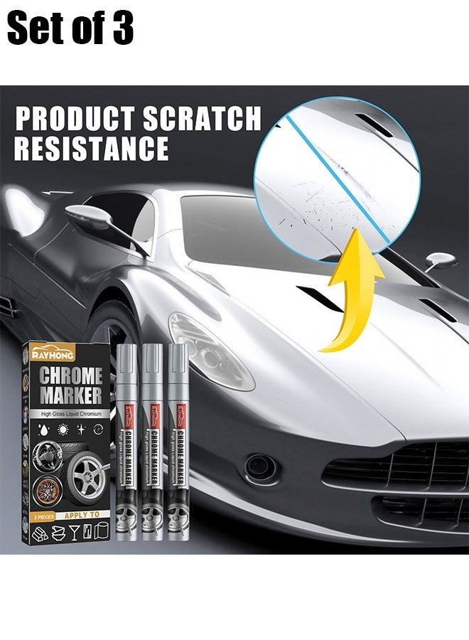 RAYHONG Chrome Marker – Permanent Mirror Chrome Pens, Chrome Paint Pens for Plastic, Metal, Model Painting, Touch Up & Repair Kit, Set of 3 Tips – Silver