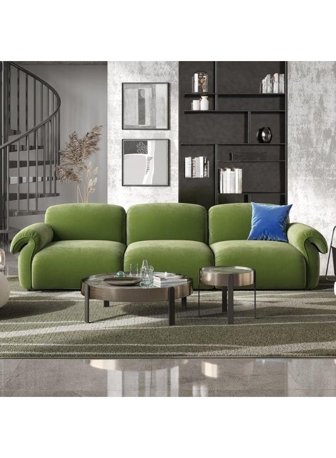 Ripple FURNITURE UAE Homes Modern Flared Arm Sofa, 3-Seater, Lime Green Velvet, Living Room Furniture