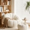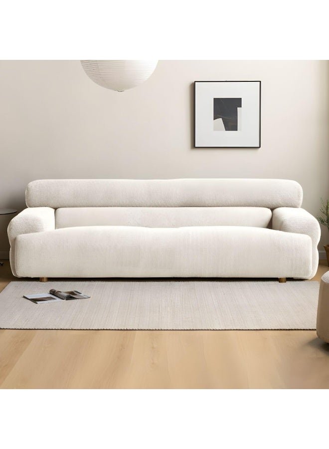 Ripple FURNITURE UAE Homes Modern Plush Sofa for Living Room, Cream White Fabric, Foam Cushions, Wooden Arms (White)