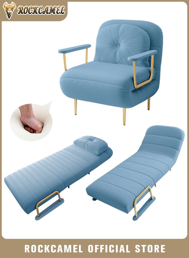 ROCKCAMEL 3-In-1 Armchair Sofa With Angle Adjustment, Convertible Sofa Bed And Leisure Recliner, Skin-Friendly Flannel Fabric, Suitable For Home And Office, Free Cloud Pillow, Can Lie down, Sit Or Sleep, Multifunctional Backrest Sofa Seat 65cm