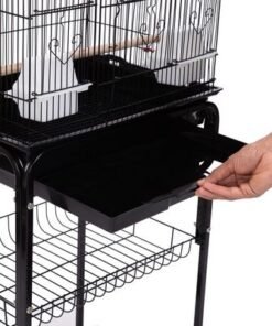Roof Top Large Bird cage with Rolling Stand for Cockatiel Sun Conure Parakeet (Black)