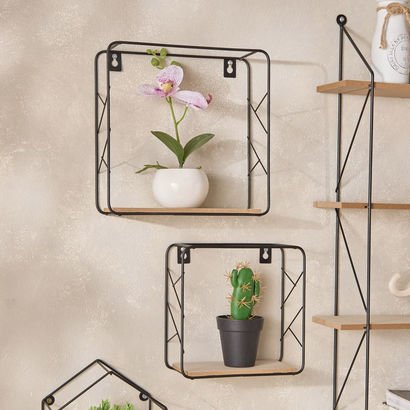 Sera 2-Piece Metal and MDF Board Wall Shelf Set