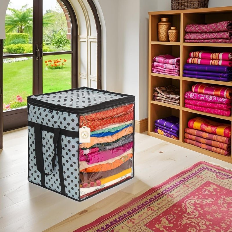 Shaping Fabric Large Saree Storage Bag with Transparent Window and Polka Dot Design