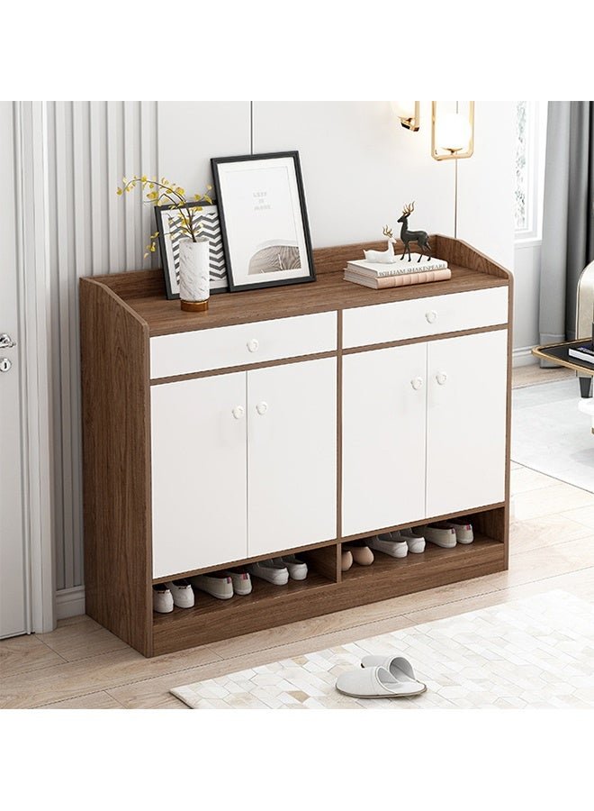 Shoe Cabinet with Door, 4 Tier Independent shoe Cupboard with Two Drawers and 4 Tier WoodenShoe Storage Cabinet, Suitable for Living Room, Bedroom, Corridor or Cloakroom