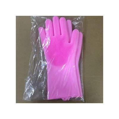 Silicone Dishwashing Gloves With Scrubber Pink 35.7×16.5x2centimeter