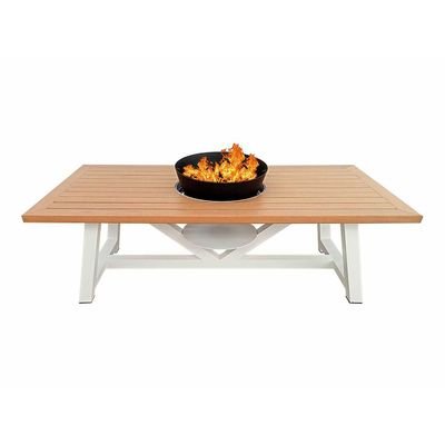 Small Rectangular Fire Pit Table Color Natural Teak & White