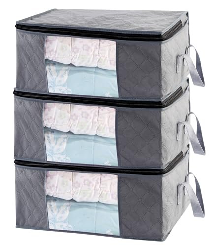 Sodynee Storage Clothes Bins Closet Bags – 35L Containers Organizer Boxes Clothing Bin Organization for Organizing Blanket Pillow Sheet Sweater, Foldable Fabric Bedroom Small Storage Totes With Lids Zipper